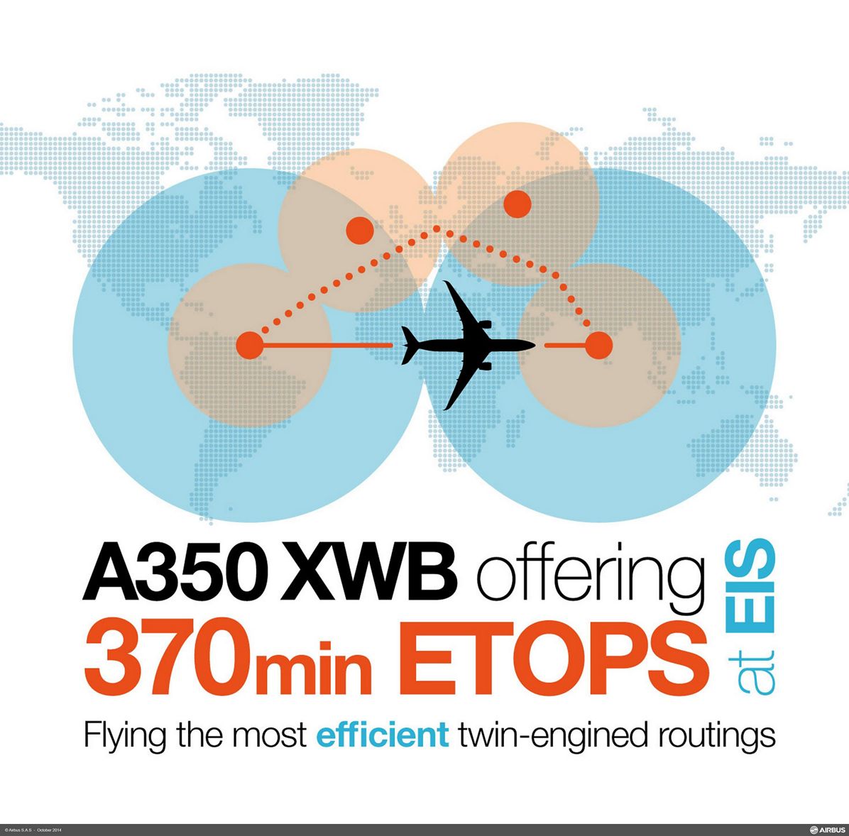 El proceso de certificación ETOPS tiene dos partes: por un lado, el avión debe certificarse, y la aerolínea que lo opera también. A partir de la concepción de bimotores con tecnología de última generación, se modificó la reglamentación ETOPS: primero se impuso la certificación 180+, es decir desde los 180 minutos hasta el límite declarado por el fabricante. Así es como existen hoy ETOPS 240, 330 y el máximo otorgado hasta el momento, ETOPS 370, homologado para el Airbus A350XWB.